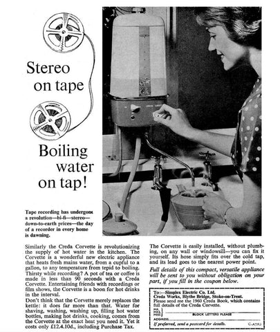 How emancipating it must have been for 50's women to have an electric geyser to deliver boiling hot water so they could have more time available to tape little Gary, Wally, Nancy and Cynthia's gurgles and belches for posterity.