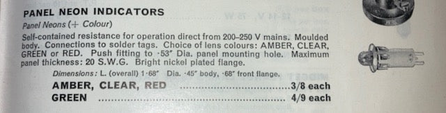 3X 1960s RS, Radiospares, Neon Indicator, 240 V, Wire Leaded, Red, Ex Equipt.