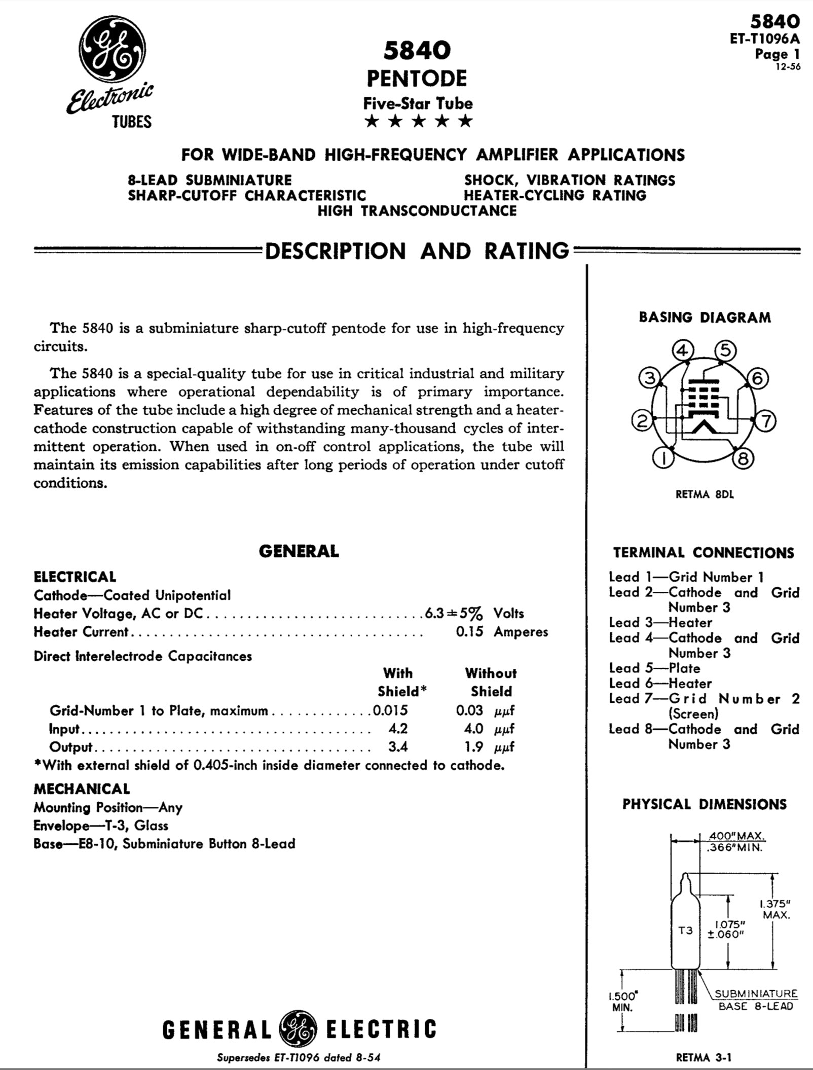 5840 5840W CV3929 EF732 SYLVANIA FOR TELEFUNKEN AK-47 MkII & ELA M260 MICROPHONES