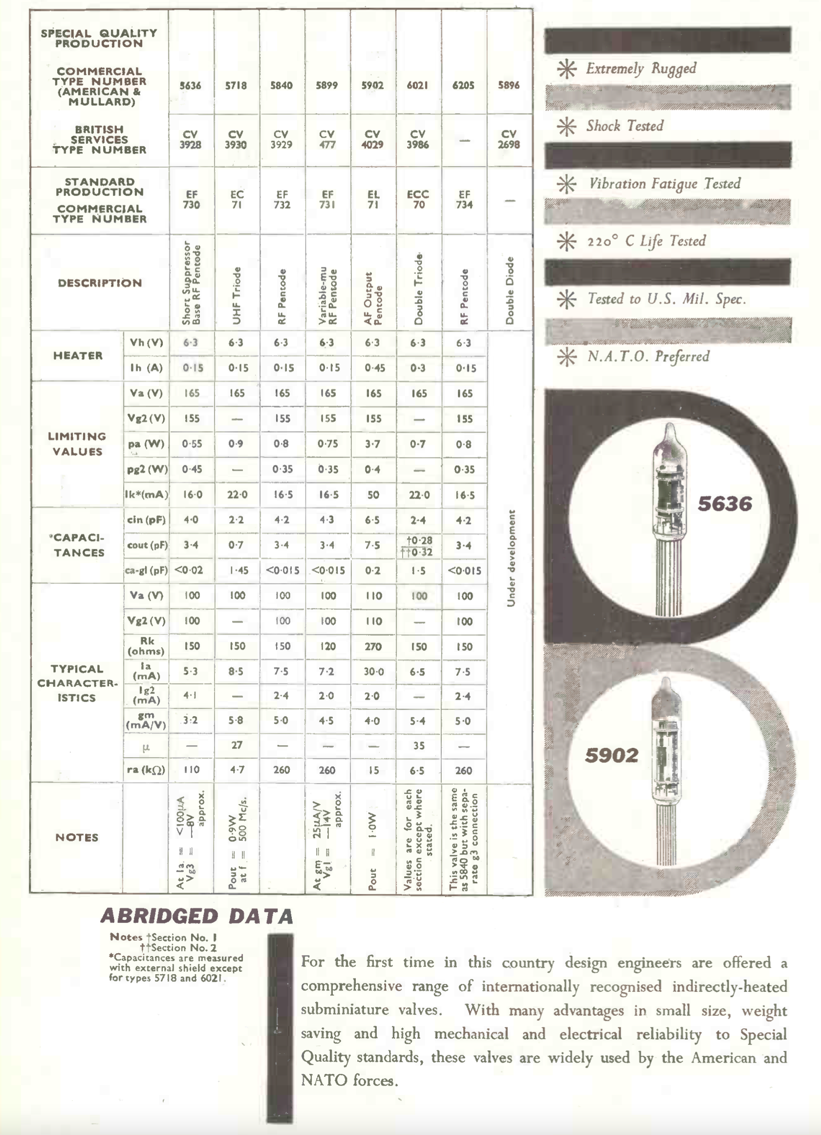 5840 5840W, CV3929 EF732 SYLVANIA, TELEFUNKEN, AK-47 MkII,ELA, M260, MICROPHONES,