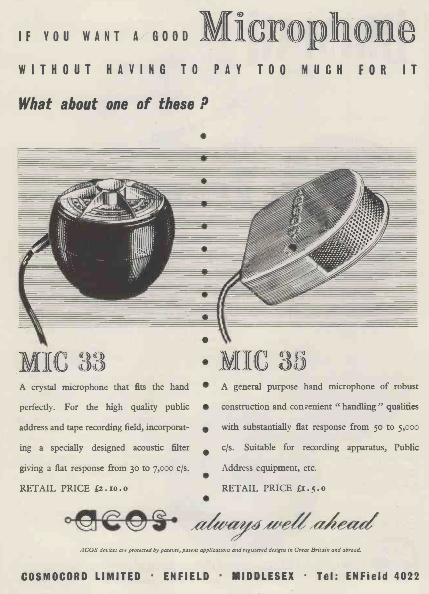 ACOS, MIC35, MICROPHONE C/W FAT BODY JACK PLUG