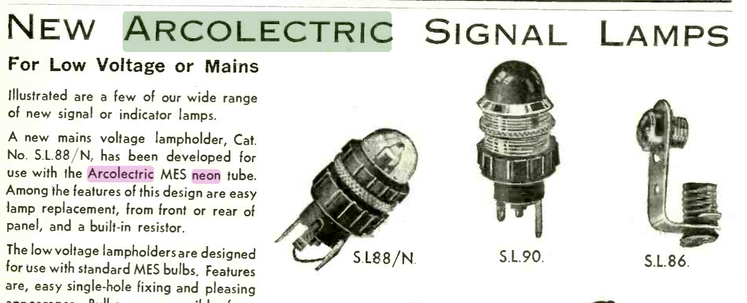 ARCOLECTRIC, CHROME BEZEL, CLEAR LENS, 22mm DIA LONG CAST BODY,SIGNAL LAMP, SL90, NOS, IN RS BOXES