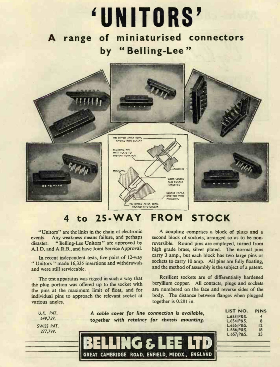 BELLING LEE, UNITOR, L654, L654/R, CHASSIS MOUNT, 8 WAY SOCKET, AIR MINISTRY, PYE , MALE PIN, FEMALE RECEPTACLE, EX EQUIPT