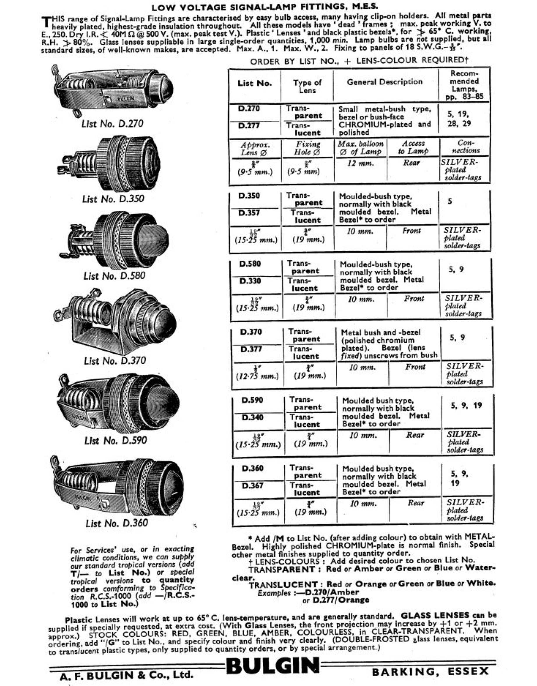 BULGIN, D370, SPECIAL DUTY, SIGNAL LAMP, WHITE GLASS LENS