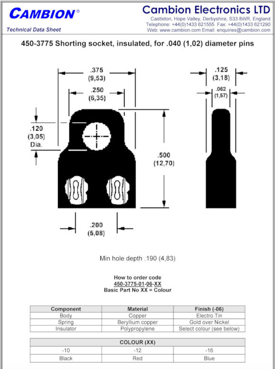 Cambion, 450-3775-01-06-16, Shorting Link, Socket, Blue, 0.190" Deep, Copper