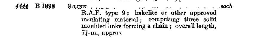 Chain, 3 Link, RAF Type 8, 10B/1275, ZA4444, Bakelite, Antenna Rigging Radio, Air Ministry, RAF, Vintage Aircraft Part