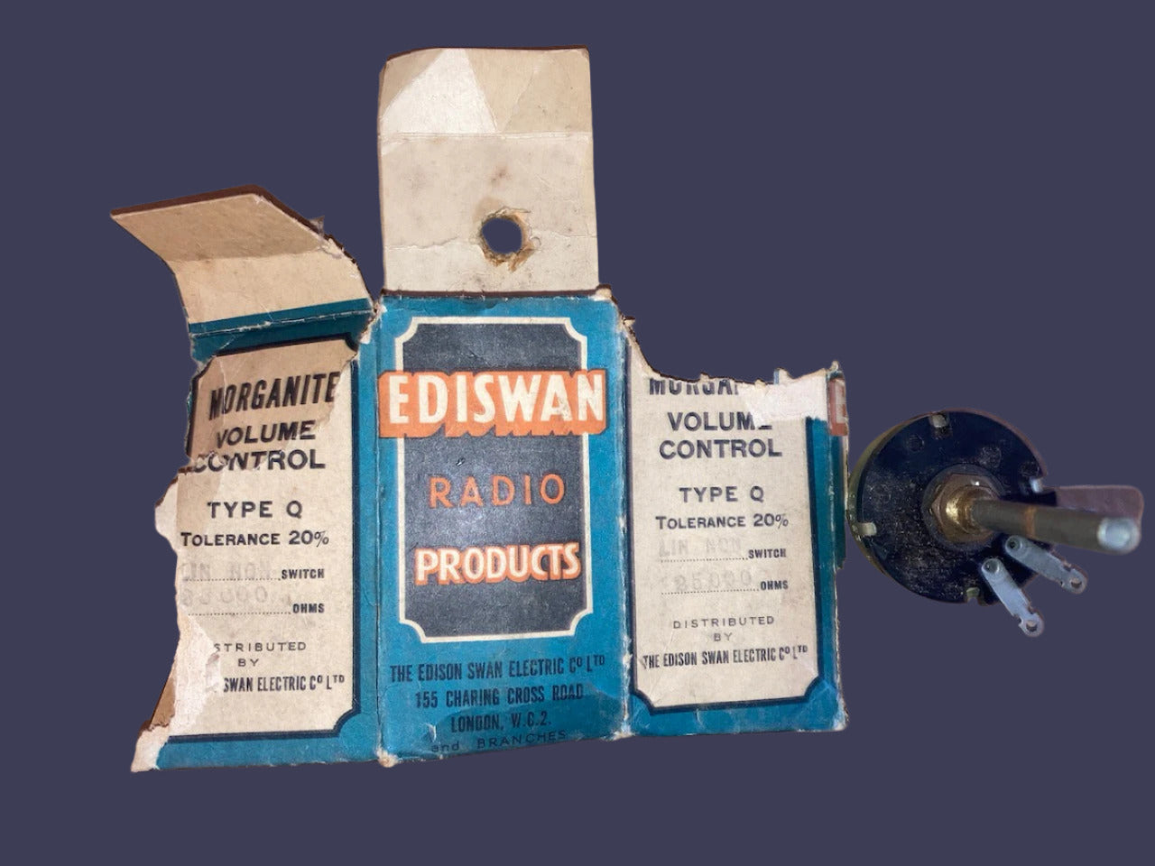 MORGANITE, VOLUME CONTROL, TYPE Q, POTENTIOMETER, 25K LIN, NON SWITCHED Lovely vintage radio volume control repair pot - new boxed never used.