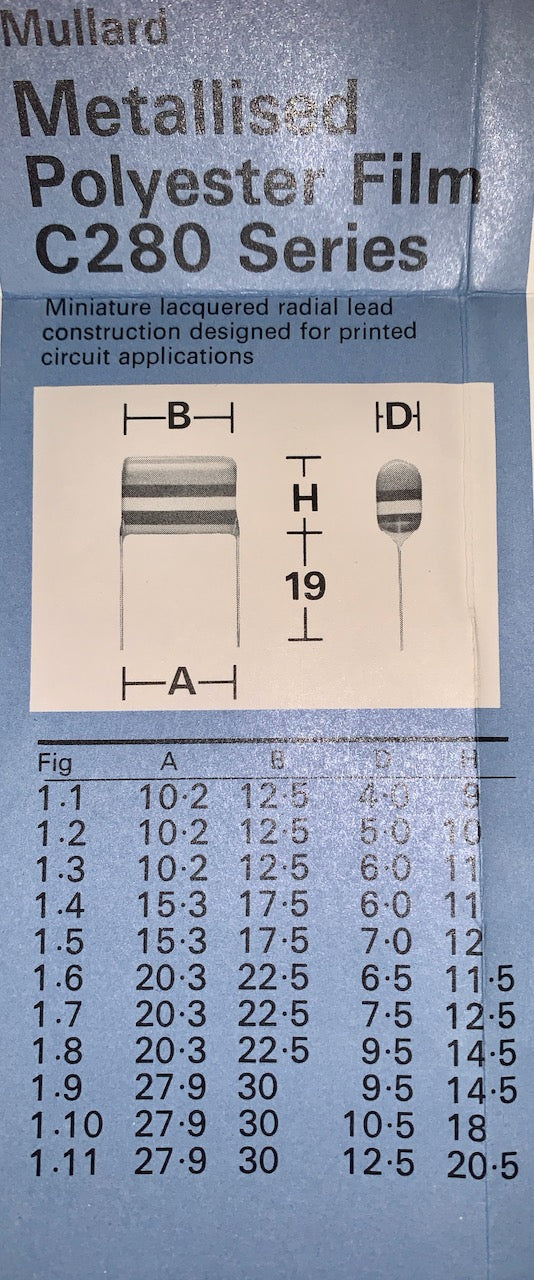 Mullard, C280 Series, Tropical Fish, Polyester Capacitors,250V & 400V Wkg, in Various Values,