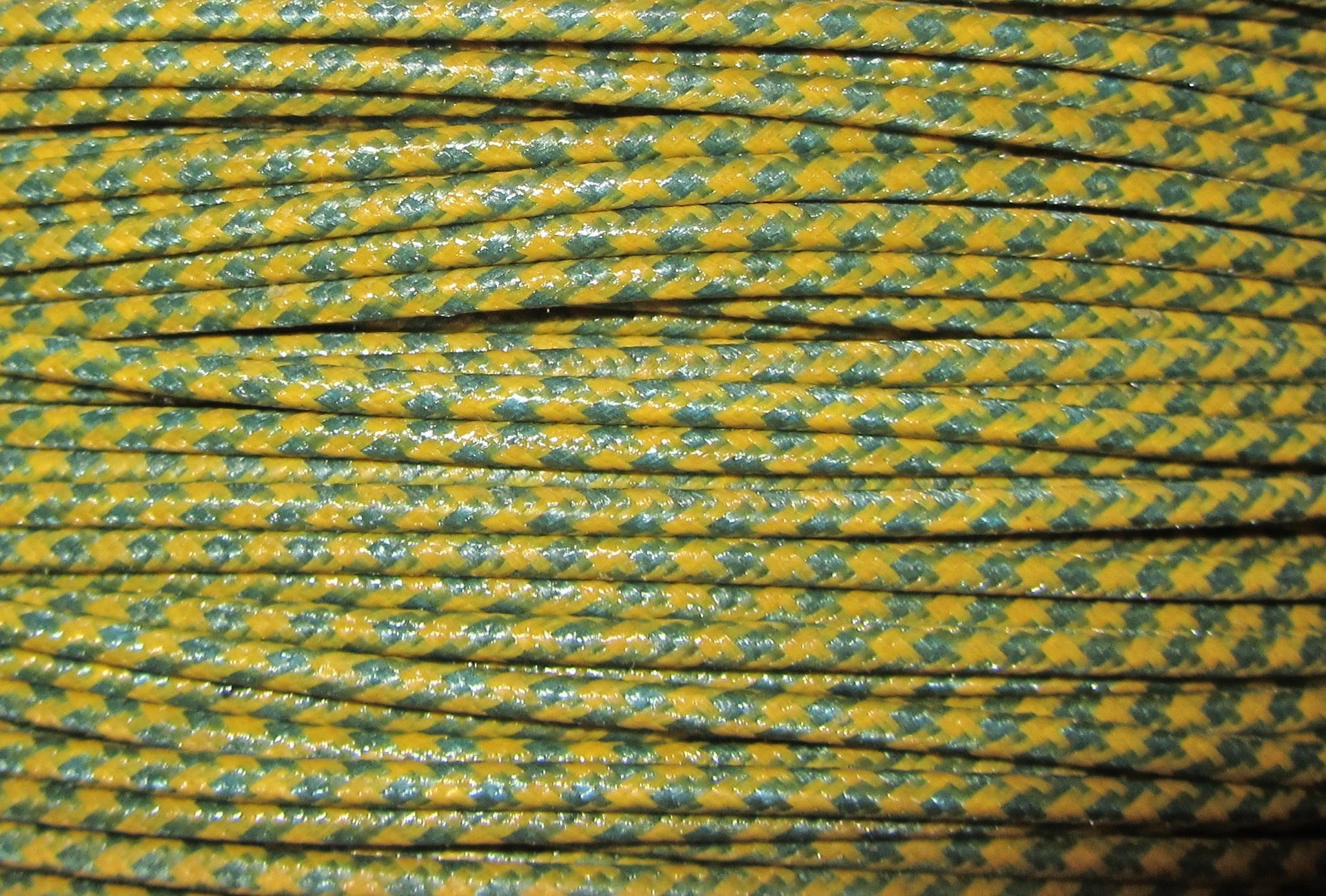 SILK BRAID COVERED VINTAGE 20 AWG HOOK UP WIRE YELLOW WITH BLUE STRIPE TRACER STRIPE