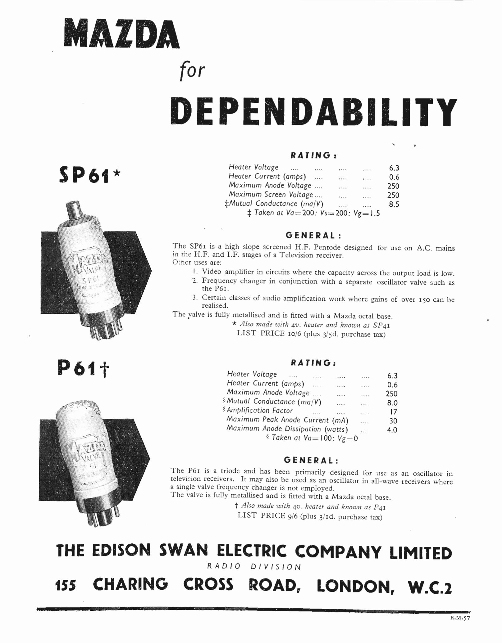 SP61, MAZDA, NEW BOXED, ARP36, VR65, CV118, CV1065, AS USED IN, R103, R103A, R109, R1132, R1294, WS62, GEE, NEW BULK PACKED