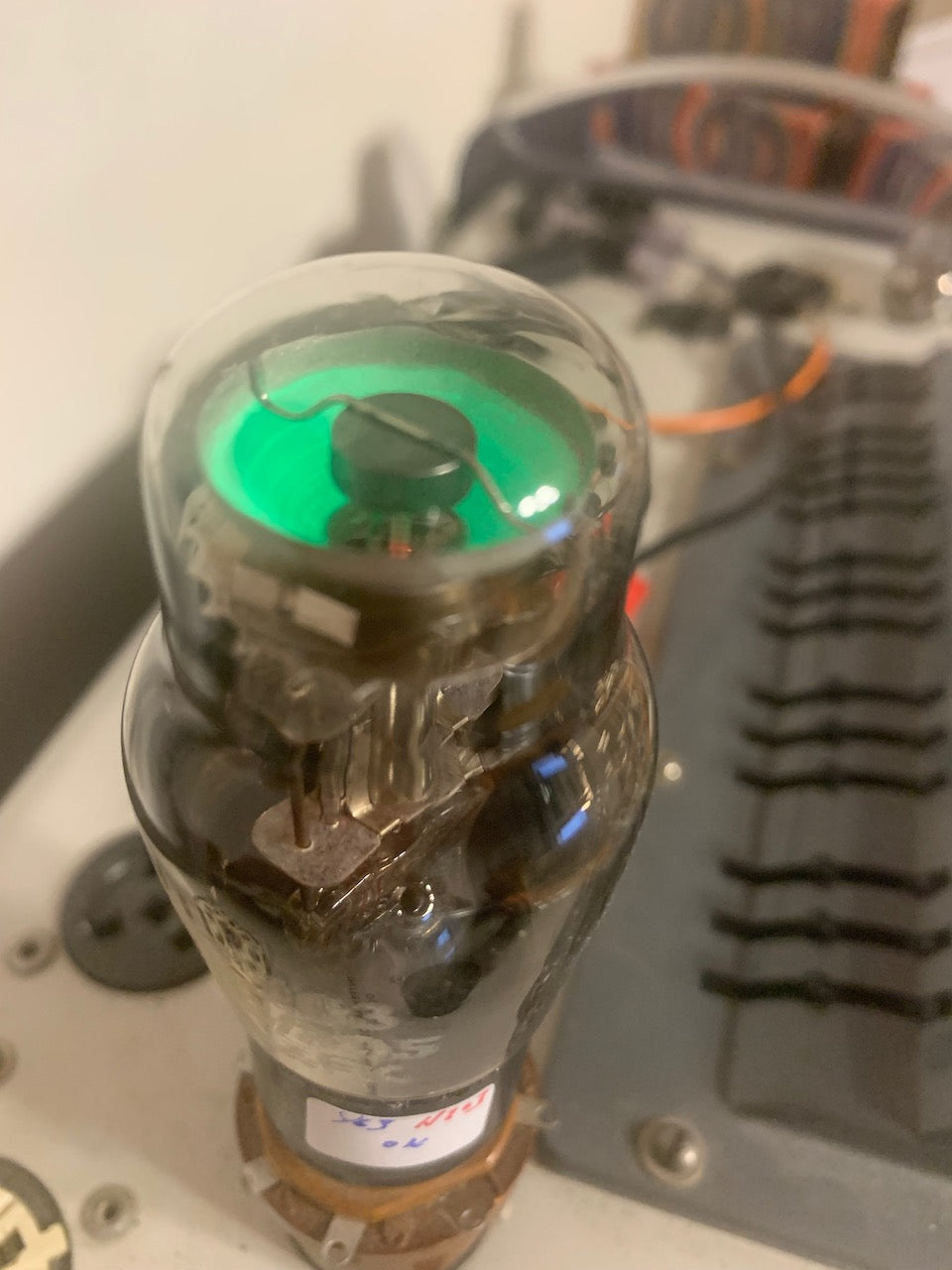 These devices are hard to find today having good emissive properties, all examples offered for sale will be shown by two photos - an envelope shot and a lit shot with the device photographed on test on our AVO VCM163 with the correct anode load (1M Ohm).