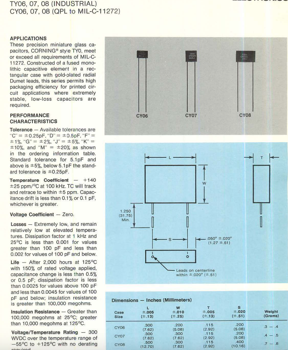 CORNING, TYO7, CY07, 100pF, 300V WKG, GLASS ENCAPSULATED CAPACITOR, EX USAF, PACK OF 5X