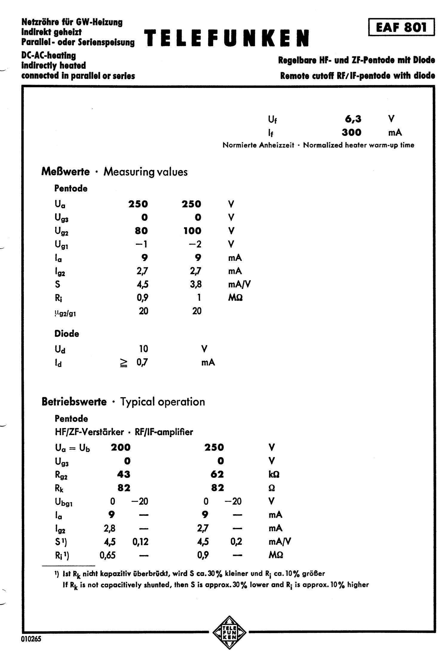 EAF801, WHITE BOX, NOS