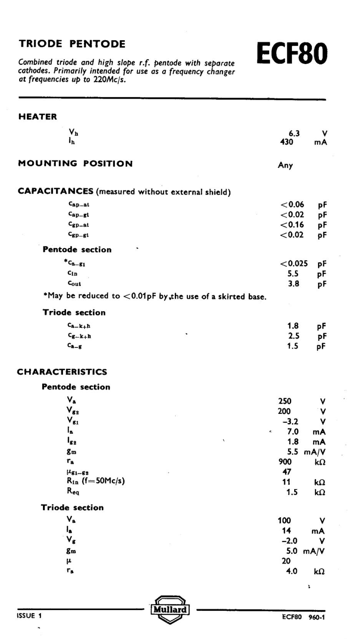 ECF80, PHILIPS, NEW BOXED, 6BL8, 6C16, CV5215