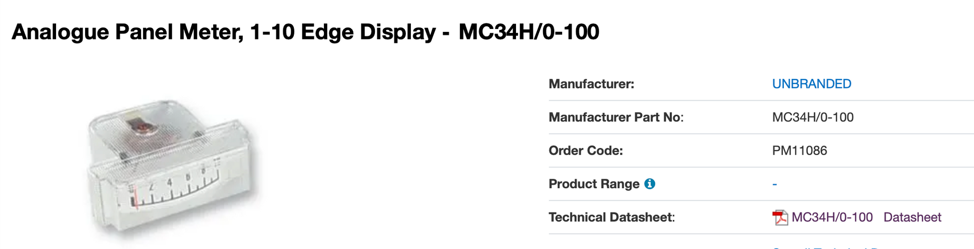 EDGE MOUNT, EDGE INDICATOR, METER, SCALED 1-10, 100uA, PM11086, MC34H/0-100, NOS