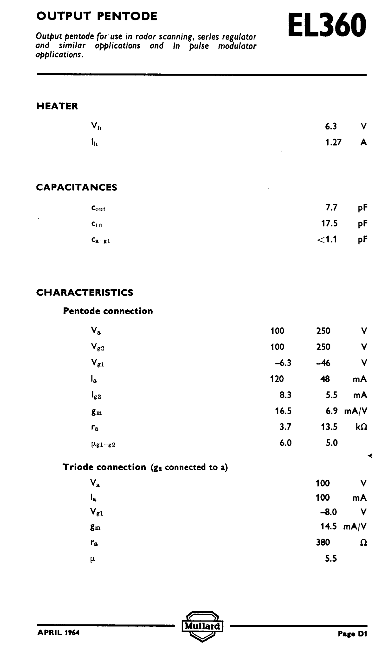 EL360, MULLARD, NOS, NIB, 11E14, CV5830