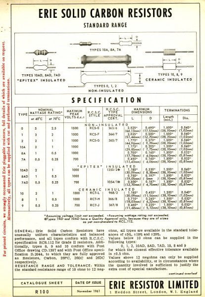 ERIE, DOGBONE, SOLID ROD, CARBON RESISTORS, , BODY TIP SPOT, TYPE A, XXK @ 1-2W