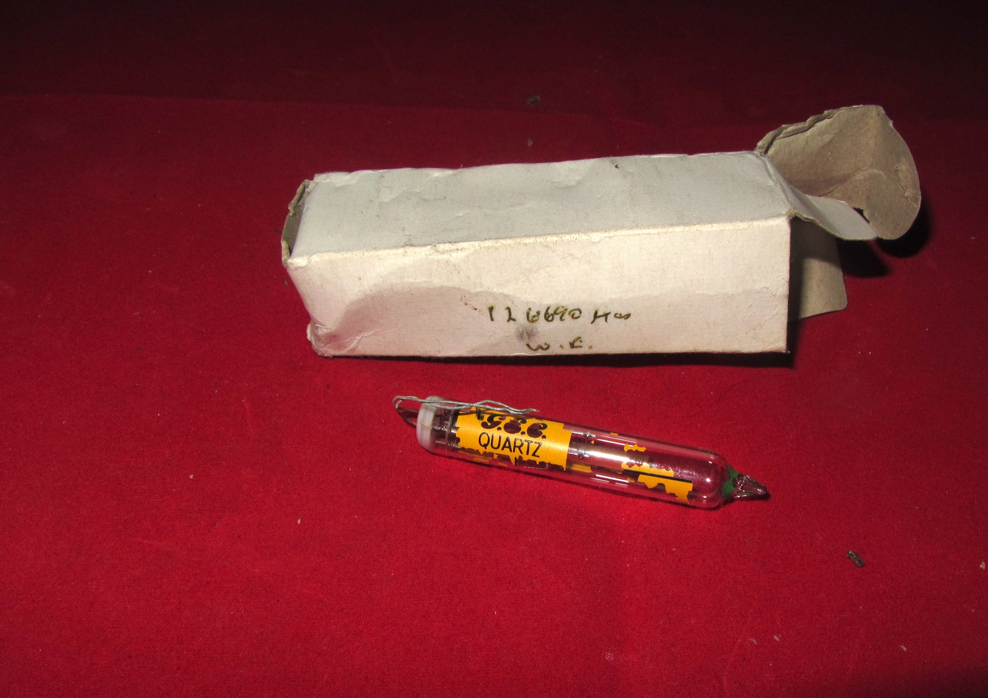 GEC, CRYSTAL TERMINATION UNIT, IN GLASS ENVELOPE, 126.690 KHz SLIGHT FLAKING OF YELLOW GEC DECAL.