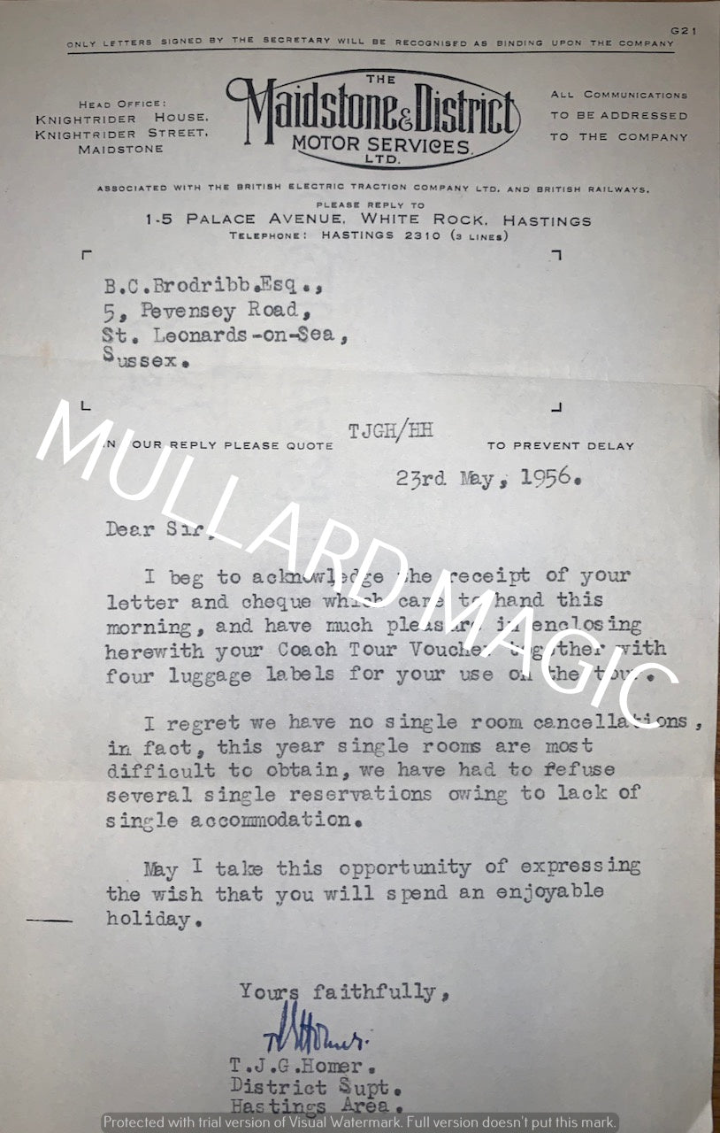 MAIDSTONE & DISTRICT MOTOR SERVICES LTD., LETTERHEAD, 1956
