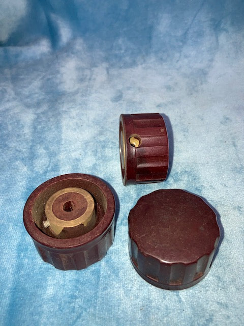 MARBLED PLUM - BROWN, BAKELITE, KNOB, 12 SCALLOPED EDGE, BRASS BUSHED, 6mm SHAFT, 45mm DIA, 27mm HIGH,