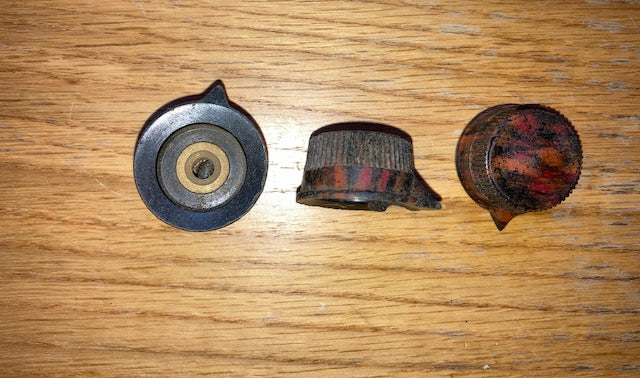 MARBLED BROWN BAKELITE, KNOB, MILLED EDGE, PEAKED, 4.7MM SHAFT, 28mm DIA, 15mm HIGH,