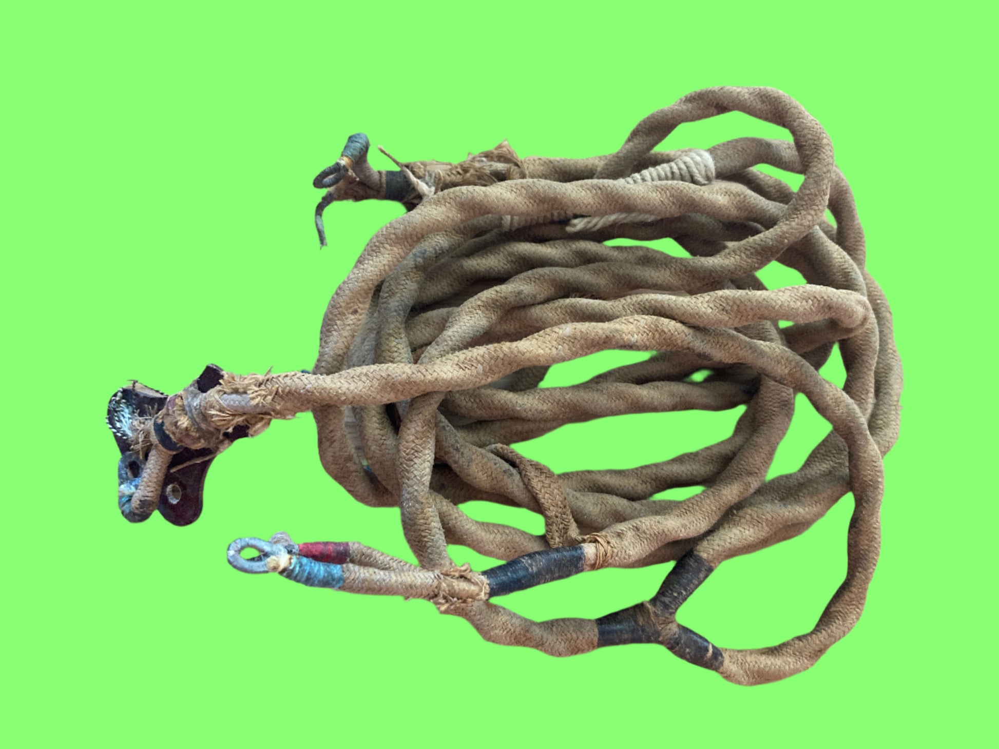 MILITARY HEADPHONE Y LEAD, WIRE LOOP TERMINATIONS, WOVEN KHAKI FABRIC COVERED WIRE,