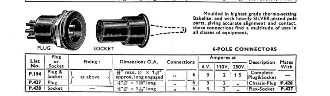 Miniature Bulgin, 6 -Pin, MALE Socket, 250V 3A, P427 ,