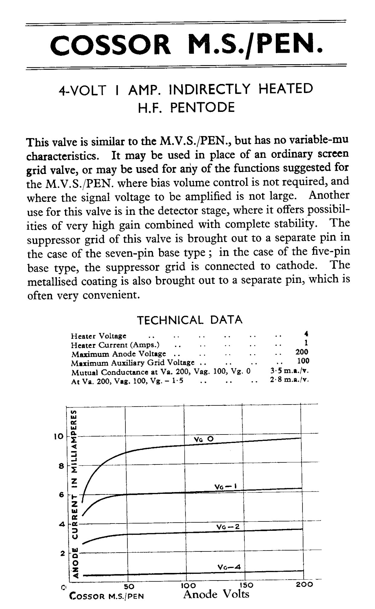 MS/Pen, COSSOR AC/S2, AC/SG, AC/SH, AS4120, CV3553, MS-Pen, MSPEN, MSG/HA, MSG/LA, SGA1, SP4, SV4, SV4A, SV4B,