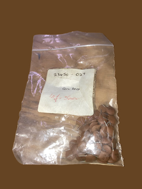 Pack of 100x, Disc Ceramic Capacitor, Axial, 100uF @ 500V, 23450-027