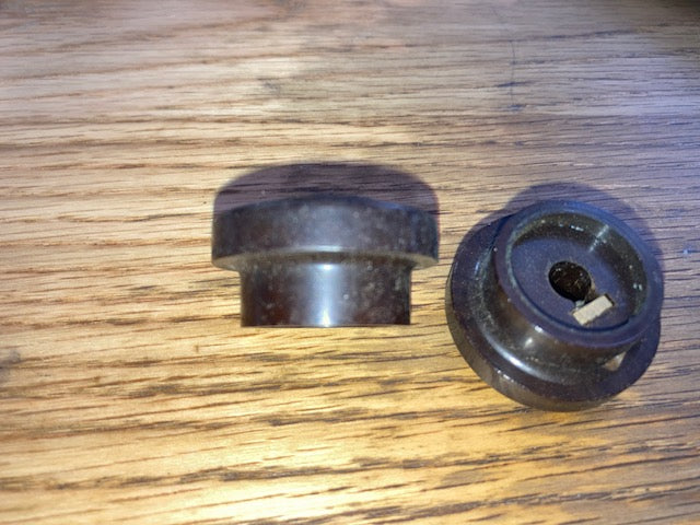 PAIR, 2X, BROWN BAKELITE, KNOB, BULGIN, K264, BRASS BUSH, 6 MM SHAFT, 32mm DIA, 18mm HIGH,