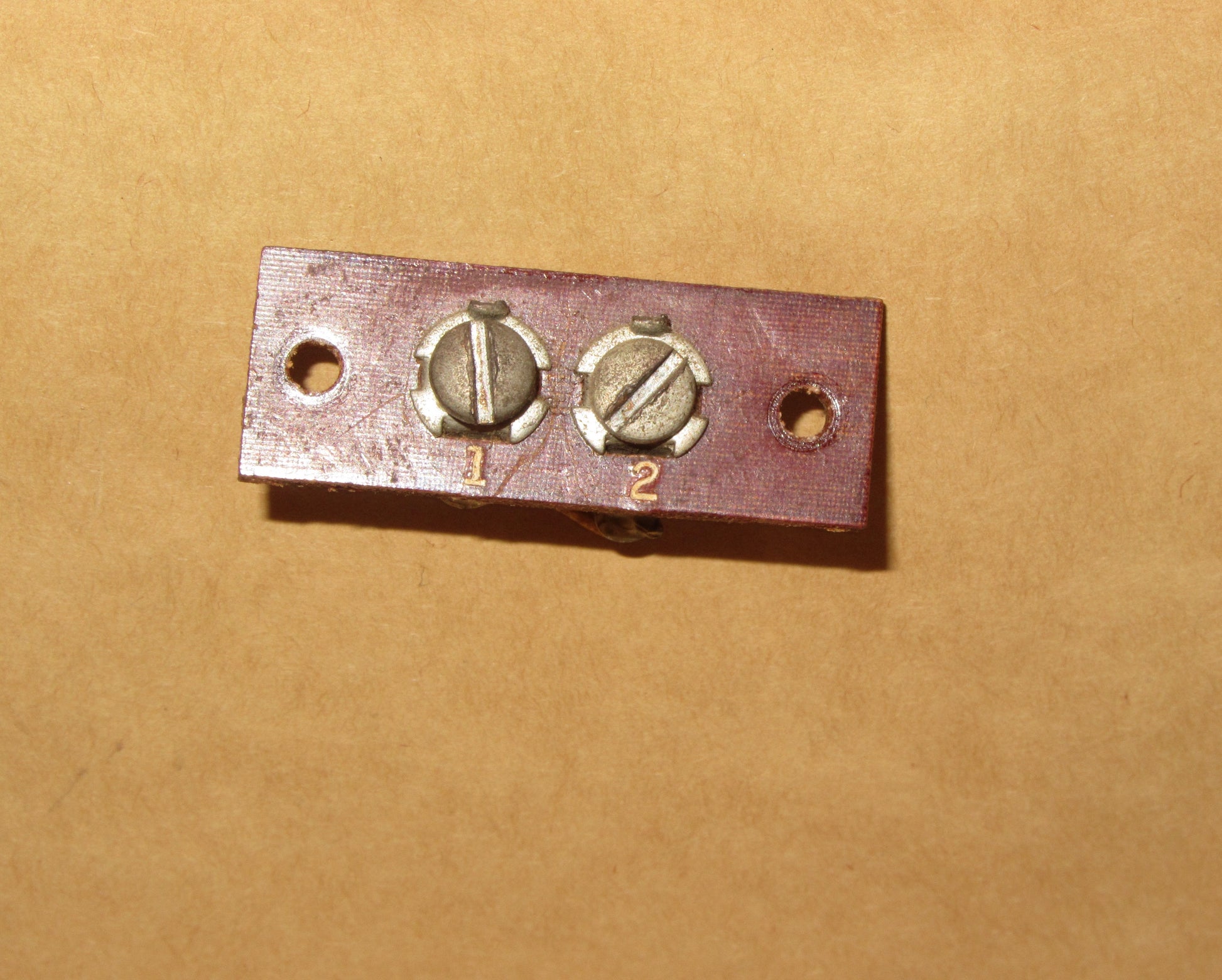 Paxolin, Vintage, 2 Position, Terminal Block, 2 way, ex equipt, possible speaker terminal. marked 1 & 2
