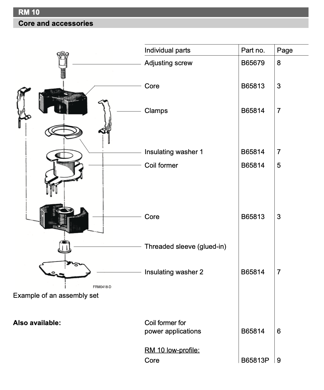RADIOSPARES, RS, 228-242, FERROXCUBE, FERRITE, RM10/250, CORE/BOBBIN SET