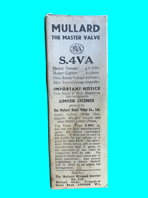 S.4VA, 5 PIN, MULLARD, NOS, S4VA, MS4B, AC/S2, AC/SG, AC/SH, CV3553, MS/Pen, MSG/HA, MSG/LA, SP4, SV4 SV4A, SV4B