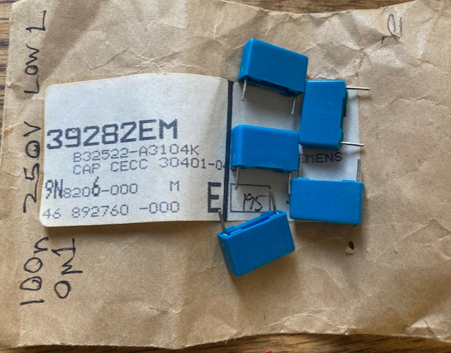 Siemens, MKP type, 0.1uF, µF, mF, mFD, 250V, Metallised Polyester Capacitor, PACK OF 5X