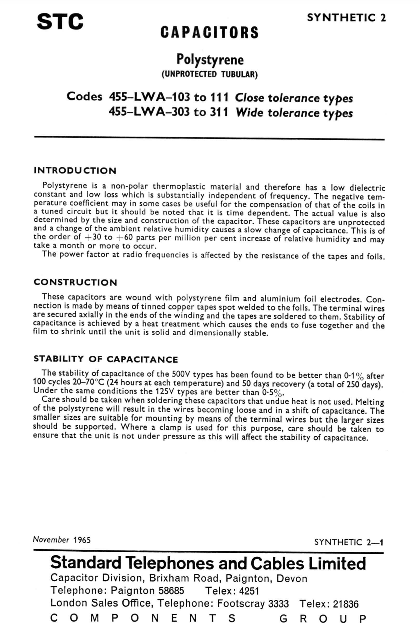 STC, POLYSTYRENE CAPACITOR, CLOSE TOLERANCE TYPE, 455-LWA-105, 2420pF 125V