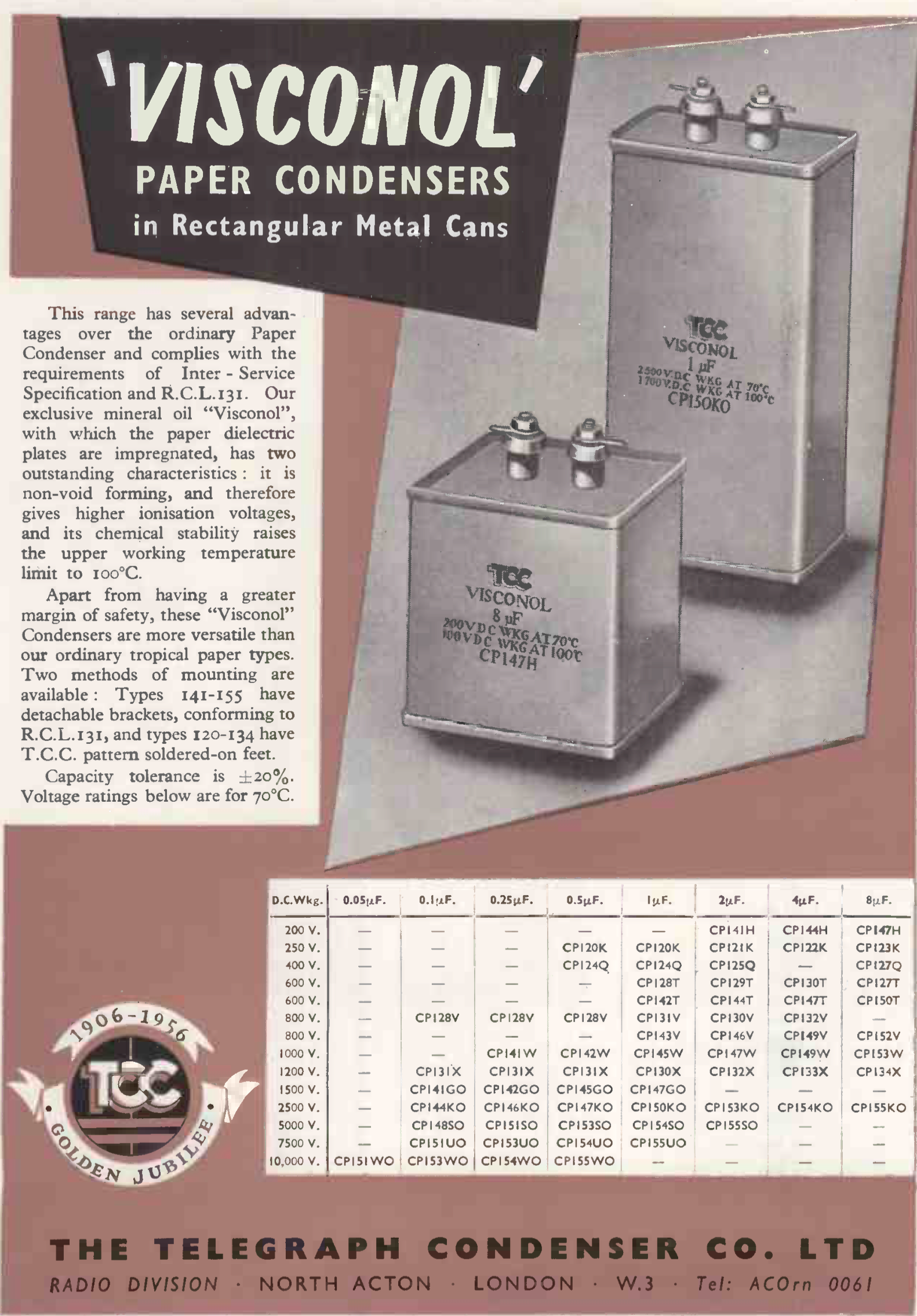 TCC, VISCONOL, PAPER IN OIL, PIO, PAPER BLOCK CAPACITORS, CERAMIC TERMINAL, 8uF @ 500V