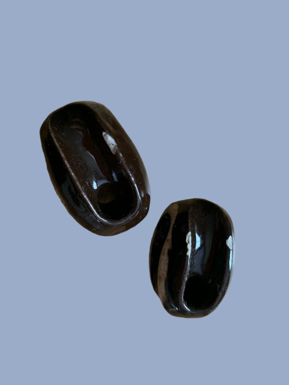 VINTAGE CERAMIC EGG ANTENNA AERIAL INSULATORS, BROWN, APPROX 38mm x 22mm
