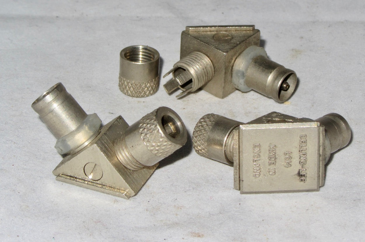 METAL, BELLING LEE, RT ANGLE, COAXIAL MALE PLUG, TV AERIAL SOCKET, TREAT YOUR MARCONI 904 OR BUSH TV12, NOS